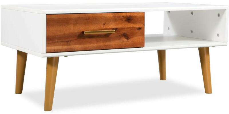 Színe: barna és matt fehér Anyag: tömör akácfa + MDF Mérete: 90 x 50 x 40 cm (Ho x Szé x Ma) 1 polccal és 1 fiókkal Könnyen összeszerelhető Kiváló minőségű dohányzóasztalunk stílusos és praktikus is egyben. Elegáns megjelenésével garantáltan bármely helyiség középpontjába fog kerülni. A dohányzóasztal szakszerűen megmunkált akácfából és kiváló minőségű
