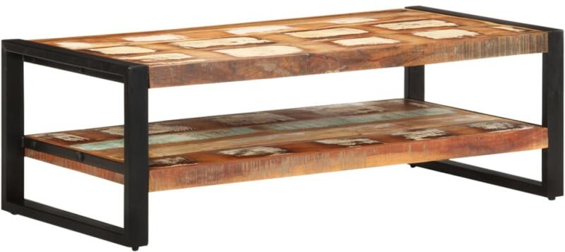 Anyaga: tömör újrahasznosított fa vegyes színű felületkezeléssel, porszórt vas Mérete: 120 x 60 x 40 cm (Ho x Szé x Ma) Összeszerelést igényel: igen Ez a rusztikus bájú, tartós fa dohányzóasztal remek választás lesz az Ön számára. A dohányzóasztal tömör újrahasznosított fából készült, amelyet régi, lebontott épületek födémgerendáiból, padlóiból és tartó