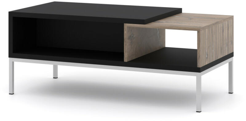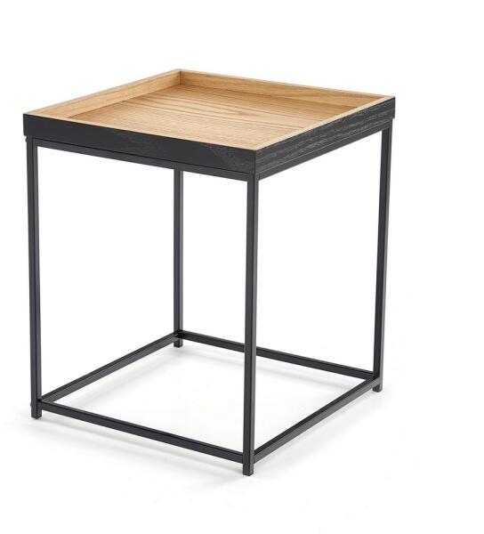 A Yava dohányzóasztal egy stílusos elem, amely különösen alkalmas modern belső terekbe. Nemcsak nappaliba, hanem céges irodákba is ajánljuk. A dohányzóasztal szerkezete a fekete fém alap és a natúr tölgy színű négyszögletes farostlemez kombinációjából épül fel. A Yava asztal fő előnyei Egy nagyszerű választás modern terekhez Fémkombináció és rostlemezek A fekete