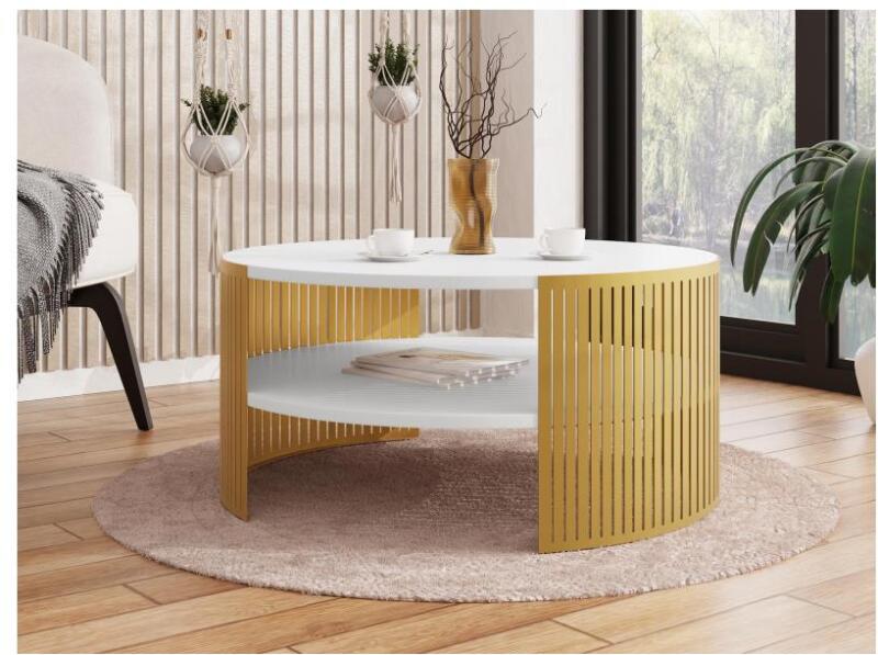 Kávésasztal a kéznél lévő dolgok tárolására. Egyszerű, modern stílusának köszönhetően bármilyen otthonba illik. A világos fa és a fehér szín kombinációja. Laminált forgácslapból készült. Az anyagvastagság: 1,8 cm.
