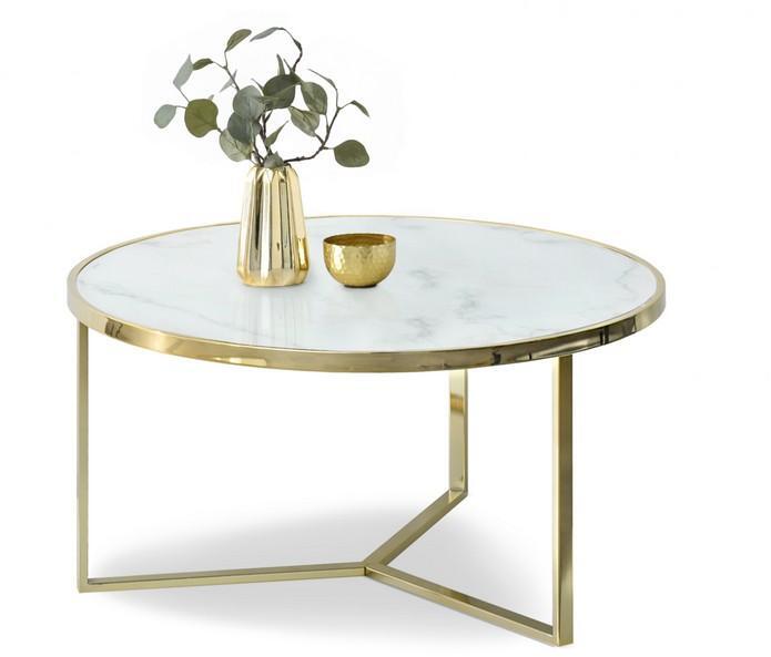 Felhasznált anyagok: asztallap – laminált üveg talpazat - metal Színek: asztallap - fehér márvány talpazat - arany