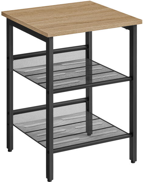 Kisasztal 2 polccal TAYLOR SONOMA eleganciát és praktikusságot hoz otthonába. A sonoma tölgy dekorációjú fa finom árnyalatával és a masszív fekete fém szerkezettel modern megjelenést kölcsönöz, amely minden belső térbe beleillik. A kompakt méret 40 x 40 x 55 cm ideális választássá teszi kisebb helyiségekbe, ahol stílusos és praktikus sarkot szeretne kialakítani. Kivál