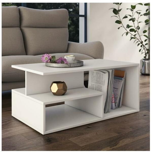 Díszítse nappaliját ezzel a modern dohányzóasztallal, mely könnyedén beleolvad otthona berendezésébe. Tartós anyag: A szerelt fa kivételes minőségű, sima felületű, szilárd, stabil, és ellenáll a nedvességnek. Masszív asztallap: A kisasztal masszív asztallapja biztonságos felületet biztosít, amelyre italokat, vázákat, gyümölcstálakat vagy dísztárgyakat helyezhet. Sok