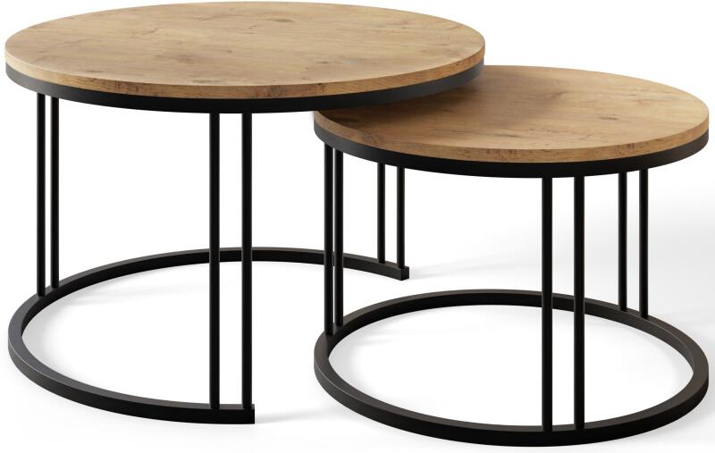 Kör dohányzóasztal 2in1 Remi. Felhasznált anyagok: asztallap - 18 mm-es laminált lap PVC élzárással; lábazat - fehérre vagy feketére szinterezett fém, 2x2 cm-es zártszelvényből. Választható színek: Craft tölgy; Lancelot tölgy; Lefkas tölgy; Sonoma tölgy; Artisan tölgy; fekete; félmatt fehér; Marble; Atelier. Méretek: REMI XL : magasság - 47 cm átmérő - 75 cm asztallap