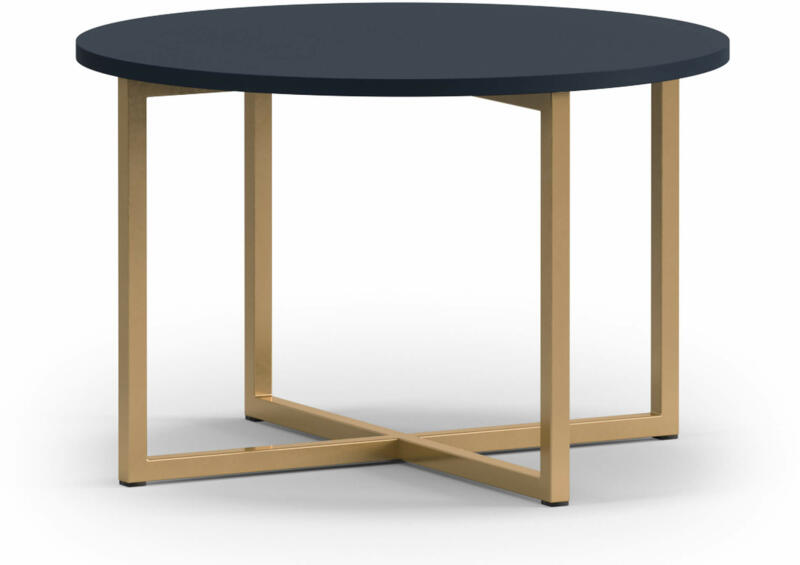 A kisebb PULA dohányzóasztal praktikus kiegészítő minden stílusos nappaliba. A kerek formájának és a 60 centiméteres átmérőjének köszönhetően tökéletesen elfér kisebb szobákba is. A dohányzóasztal kék asztalappal rendelkezik, amelyhez társulnak az elegáns arany színű lábak. Az asztal nem csak egy praktikus bútordarab, de egy igazán szép és dekoratív elem is lehet