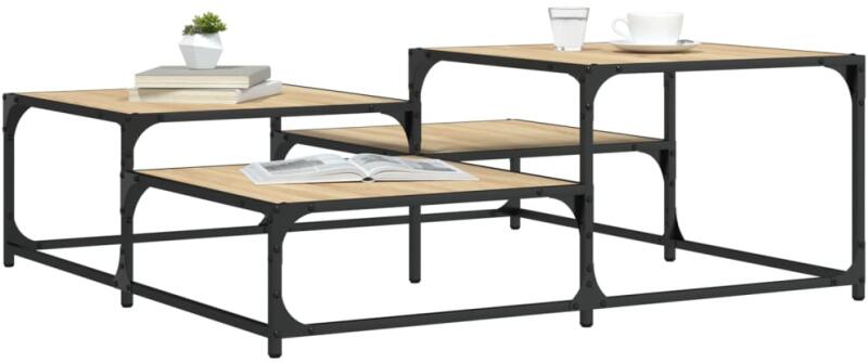Díszítse nappaliját ezzel a stílusos dohányzóasztallal, mely könnyedén beleolvad otthona berendezésébe. Tartós anyag: A szerelt fa kivételes minőségű, sima felületű, szilárd, stabil, és ellenáll a nedvességnek. A szerelt fából készült kanapéasztal könnyen tisztítható. Bemutatófunkció: Ez a négyzet alakú dohányzóasztal különböző magasságú asztallapokból ál