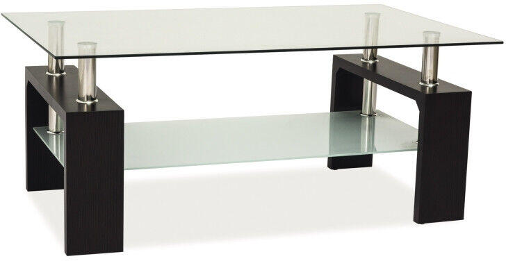 Modern és elegáns dohányzóasztal edzett üveglappal A Lisa Basic II dohányzóasztal tökéletes kombinációja a modern dizájnnak és a funkcionalitásnak. Az asztal 100 cm hosszú és 60 cm széles edzett üveglappal rendelkezik, amely biztonságos és strapabíró. A wenge színű MDF lábak és a króm oszlopok stabil alapot biztosítanak. Az alsó polc további tárolóhelyet kínál, é