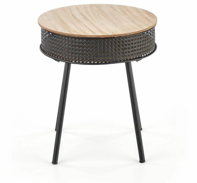 Trofea dohányzóasztal Ez a dohányzóasztal különösen alkalmas modern nappaliba és irodába. Kialakításának köszönhetően ideális kisebb, tárolóhelyigényű helyekre. A dohányzóasztal érdekes, de praktikus kialakítású. Az asztal szerkezete feketénmasszív porszórt acélból készült. Asztallapok természetes furnérból, MDF-el kombinálva természetes fából és mesterség