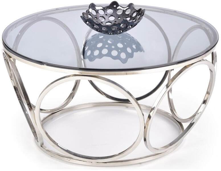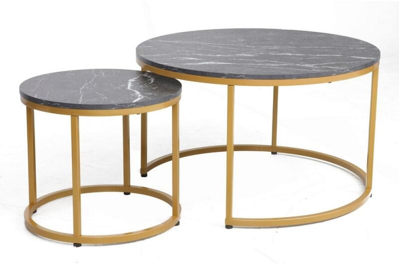 Dion II dohányzóasztal A Dion II egy 2, azonos kialakítású, de különböző méretű dohányzóasztalból álló készlet. Egyrészt elegáns megjelenésű, másrészt lehetővé teszi, hogy a kisebb asztalt részben vagy teljesen a nagyobb alá csúsztassa, és helyet takarítson meg. Mindkét asztal laminált forgácslapból készült kör alakú lappal rendelkezik, amelyet arany színű f