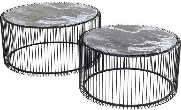 Lenyűgöző dohányzóasztal-duó márvány dizájnnal, amely nemcsak körkörös formájával, hanem filigrán magasfényű keretével is lenyűgöz, a szokatlan, tükörkialakítású asztallap luxus benyomást kelt. Az asztalok varázslatot kölcsönöznek nappalijának, és szinte minden kanapéhoz passzolnak. Ezeket az asztalokat az éjjeliszekrények alternatívájaként is használhatja. M