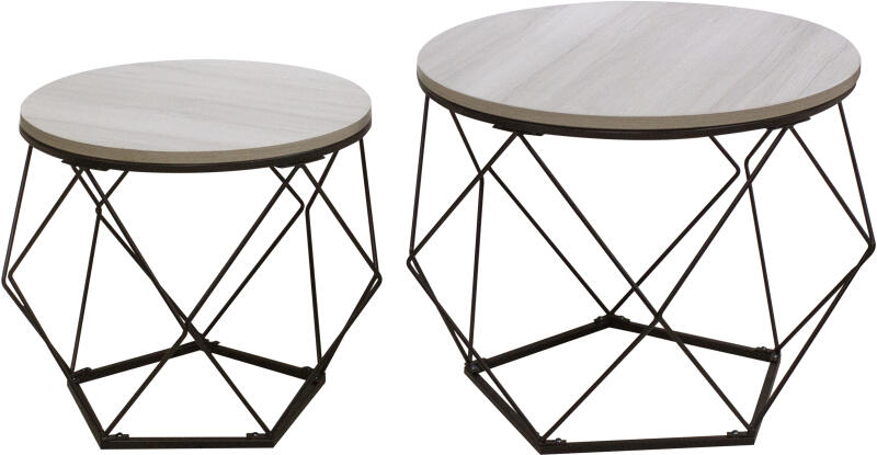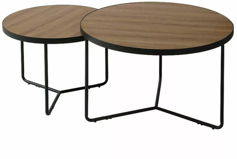 Modern és sokoldalú dohányzóasztal szett a nappali elegáns kiegészítéséhez Az Italia II dohányzóasztal szett két különböző méretű, kör alakú asztalt tartalmaz, amelyek tökéletesen kiegészítik egymást. A nagyobb asztal 80 cm átmérőjű és 50 cm magas, míg a kisebb asztal 60 cm átmérőjű és 45 cm magas. A diófaszínű MDF asztallap és a matt fekete fém váz kombin