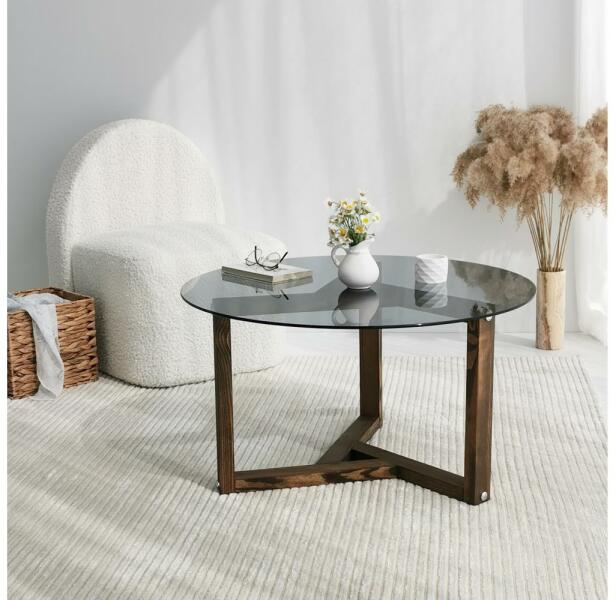Gyártó: Decortie Modell: Miro Leírás: Kávésasztal egyszerű kialakítással. Modern stílusának köszönhetően szinte bármilyen nappaliba illik. Az asztallap edzett üvegből, az asztallábak fenyőfából készültek. Az üveg vastagsága: 6 mm. Tulajdonságok: Anyag: Üveg; Fenyő Magasság: 400 mm Átmérő: 750 mm Tömeg: 13,84 kg