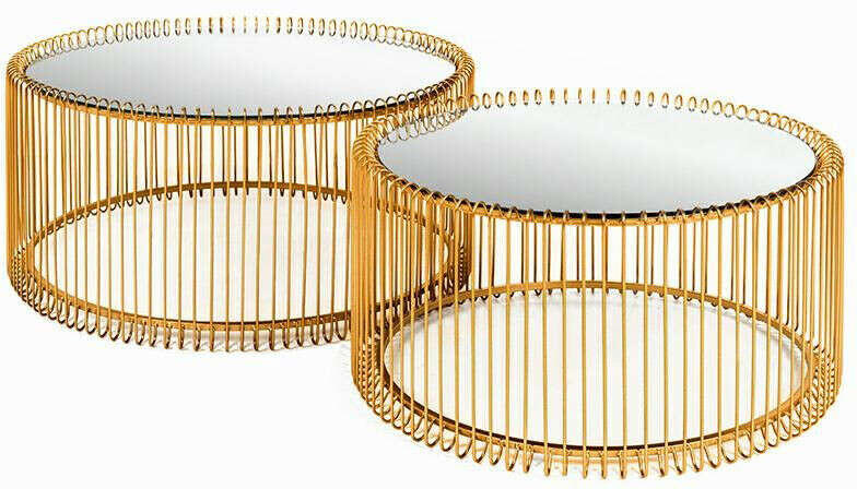 KARE dohányzóasztal szett WIRE sárgaréz. A Kare Design Wire sorozatából származó dohányzóasztalok klasszikus lakberendezési tárgyak, szokatlan formákkal. A tükrös üveglapok a sárgaréz fém kivitelezéssel kombinálva tökéletes helyet találnak a modern és avantgárd enteriőrökben. Méretek: magasság 30,5 cm. 2) sz. 69,5 cm / magasság 33,5 cm Nettó súly (készlet): 1,5 kg