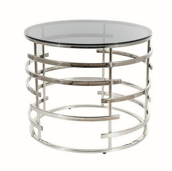 Livia II dohányzóasztal A Livia II érdekes választás lesz egy korszerűbben felszerelt nappaliba, irodába vagy vállalati előcsarnokba. A kör alakú asztallap edzett füstölt üvegből készül, átmérője 60 cm. Alkalmas például egy sarokkanapé-készlethez vagy több stílusos fotelhez. Az asztal magassága 50 cm. A fő dizájnelem azonban az alap. Krómozott rozsdamentes acélból k