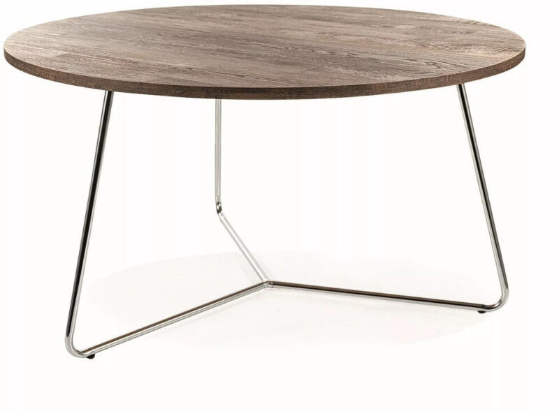 Modern és elegáns dohányzóasztal a nappali központi elemeként Az Alta dohányzóasztal tökéletes kombinációja a modern dizájnnak és a funkcionalitásnak. A 80 cm átmérőjű kerek asztallap diófa furnérral borított, amely természetes melegséget sugároz. A króm színű, karcsú fémlábak stabil alapot biztosítanak, miközben légies megjelenést kölcsönöznek a bútornak. Az
