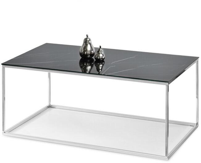 Felhasznált anyagok: asztallap - laminált üveg lábazat - fém Színek: asztallap - fekete márvány lábazat - króm