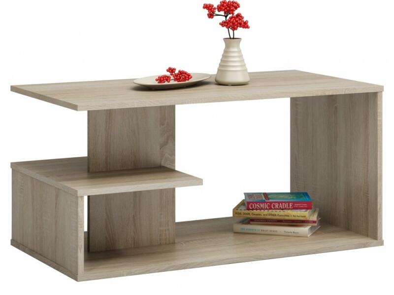 Toledo modern stílusú dohányzó asztal MATT sonoma színben. Ötletes kialakításának, változatos pakolóhelyeinek köszönhetően a nappali tökéletes kiegészítője lesz. 16 mm vastag laminált lapból készült, kiváló minőségű bútor. Tisztításához ne használjon erős vegyszereket, felületét puha ruhával törölje le!