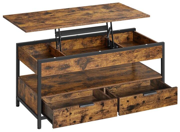 Gyönyörű és praktikus, állítható magasságú dohányzóasztal ipari stílusban egyedi kiegészítője lesz nappalijának! A dönthető asztallap, a fiókok és a rengeteg tárolóhely maximalizálja a kényelmet és a rendet otthonában. Állítható asztalmagasság: A dohányzóasztal teteje 63 cm-ig kihúzható, így könnyebben dolgozhatsz a laptopodon, ideális étkezéshez, alkotáshoz