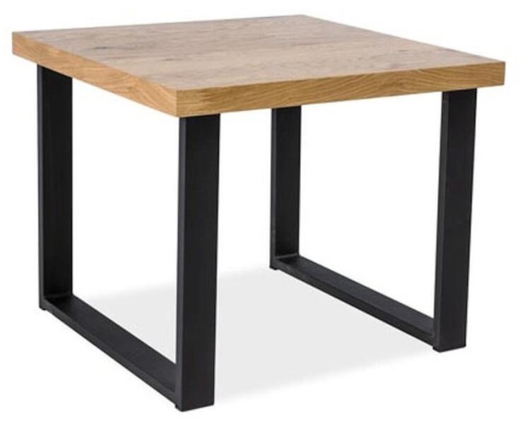 Kávésasztal. Egyszerű, modern stílusának köszönhetően bármilyen otthonba illik. Fémből és tömör tölgyfából készült. Az asztallap vastagsága: 2 cm. Az asztal magassága: 48 cm.