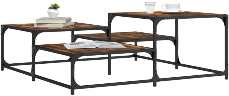 Díszítse nappaliját ezzel a stílusos dohányzóasztallal, mely könnyedén beleolvad otthona berendezésébe. Tartós anyag: A szerelt fa kivételes minőségű, sima felületű, szilárd, stabil, és ellenáll a nedvességnek. A szerelt fából készült kanapéasztal könnyen tisztítható. Bemutatófunkció: Ez a négyzet alakú dohányzóasztal különböző magasságú asztallapokból ál