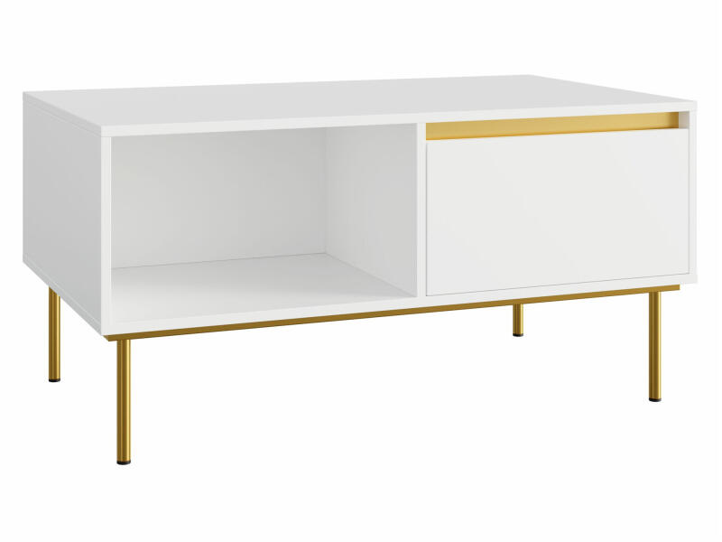 Gyártó: Zena Home Modell: 875ZNA2813 Leírás: Kávésasztal a kéznél lévő dolgok tárolására. Egyszerű, modern stílusának köszönhetően bármilyen otthonba illik. Elegáns megjelenés a márvány dekornak köszönhetően. Fehér és arany színben. Laminált forgácslapból készült, lábai fémből készültek. Tulajdonságok: 100% melamin bevonatú forgácslap Vastagság: 18 mm F