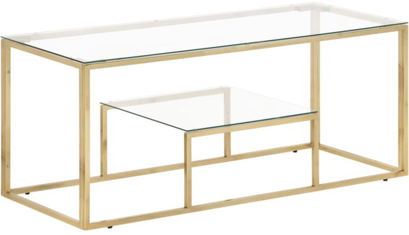 Ez az egyszerre praktikus és szép dohányzóasztal a helyiség központi eleme lesz. Üveg felső lap: A kisasztal teteje jól látható és biztonságos felületet biztosít rágcsálnivalók, italok, vázák, gyümölcstálak vagy egyéb dísztárgyak számára. Masszív és stabil váz: A nappaliasztal rozsdamentes acél váza szilárdságot és stabilitást biztosít. Könnyen karbantarthat