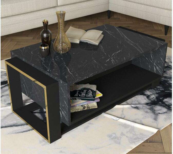Gyártó: ASIR GROUP Modell: AS0510 Leírás: Kávésasztal, ahol tárolhatja azokat a dolgokat, amelyeket a közelben szeretne tartani. Egyszerű, modern stílusának köszönhetően bármilyen otthonba illik. Elegáns megjelenés a márvány dekornak köszönhetően. Laminált forgácslapból készült. Tulajdonságok: 100% melamin bevonatú forgácslap Vastagság: 18 mm Méret: 106,4 x 60 x 40,