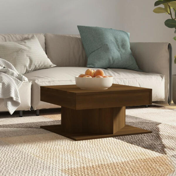 Színe: barna tölgy Anyaga: szerelt fa Mérete: 57 x 57 x 30 cm (Ho x Szé x Ma) Összeszerelést igényel: igen Csempésszen egy csipetnyi eleganciát otthonába ezzel a stílusos dohányzóasztallal. Prémium minőségű anyag: A szerelt fa kivételes minőségű, sima felületű, szilárd, stabil, és ellenáll a nedvességnek. Praktikus felső lap: A kanapéasztal teteje biztonságos felület