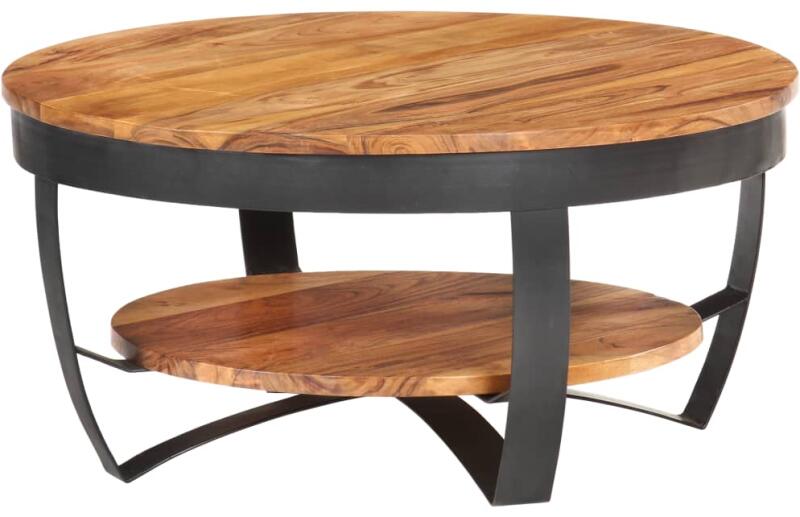 Anyaga: tömör akácfa mézbarna bevonattal, porszórt acél Mérete: 65 x 32 cm (Átmérő x Ma) Felületkezelés: csiszolt, festett és lakkozott Egy polccal Összeszerelést igényel: igen Ez az ipari stílusú fa dohányzóasztal vintage bájt sugároz, és otthona megkapó kiegészítője lesz. A dohányzóasztal kisasztalként vagy végasztalként is használható. A retró stílusú dohán
