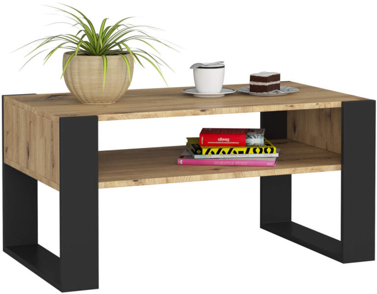 Modern vonalvezetésű dohányzóasztal laminált lapból, praktikus tárolópolccal. Az artisan tölgy és fekete színkombináció elegáns megjelenést kölcsönöz, míg a strapabíró ABS élzárás tartósságot biztosít. Stílusos és praktikus dohányzóasztal modern otthonokbaA DOMI dohányzóasztal tökéletes választás azoknak, akik az elegáns megjelenést és a praktikusságot egya