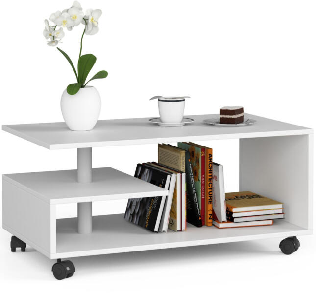 Modern, görgős dohányzóasztal praktikus tárolóhellyel, amely tökéletes választás a kortárs lakberendezéshez. A kopásálló laminált lapból készült, ABS élzárással ellátott bútor könnyen mozgatható és sokoldalúan használható. Innovatív Dizájn Maximális FunkcionalitássalA Vini görgős dohányzóasztal egy modern és praktikus bútordarab, amely egyesíti a stílust