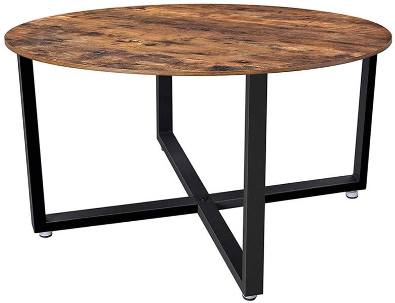 kerek dohányzóasztal, ipari stílusú koktélasztal, tartós fém váz, könnyen összeszerelhető, nappaliba, hálószobába, rusztikus barna és fekete Központban: Hívja meg barátait egy szórakoztató délutáni társasjátékra vagy egy filmestre;ez a nagy, 88 x 47 cm-es kerek asztal (átmérő x magasság) tökéletes társ lesz kényelmesen dámázni, harapnivalókat és italokat fogyas