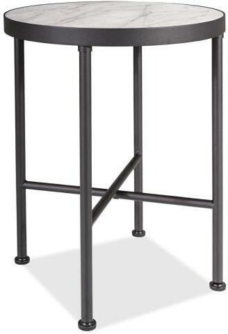 A Talisman asztal főként kisebb belső terekhez alkalmasTalisman dohányzóasztal 40 cm Méreteinek köszönhetően a Talisman kerek dohányzóasztal főként kisebb belső terekben talál alkalmazást. Tömör fémből készült konstrukciója fekete matt, biztosítja az asztal általános stabilitását. Az asztallap fa anyagból és furnérból készült, márvány díszítéssel. Ezt az aszt