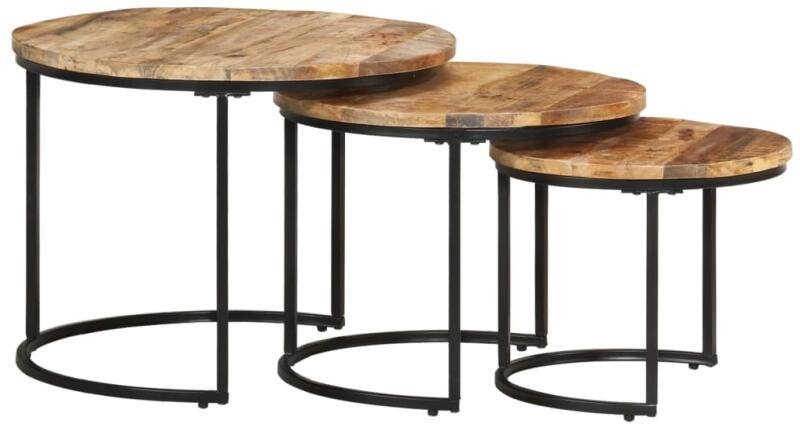 Gyártó: vidaXL Modell: 338002 Leírás: A három különböző méretű, jellegzetes és stílusos, fából készült egymásba tolható asztal garantáltan nagyszerű kiegészítő lesz nappalijában, irodájában, a folyosón stb. A dohányzóasztalok mangófából, egy sűrű erezetű keményfából készültek természetes felületkezeléssel. A mangófa arról ismert, hogy elbírja a ráneh