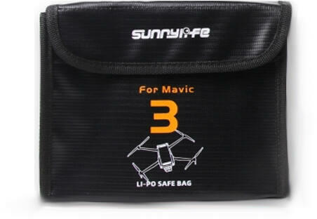 Tűz és robbanásálló akkumulátor tároló zsák, melyekben biztonságosan tárolható és hordozható a DJI Mavic 3 akkumulátora. A tároló ezen verziója három darab akkumulátor befogadására képes.