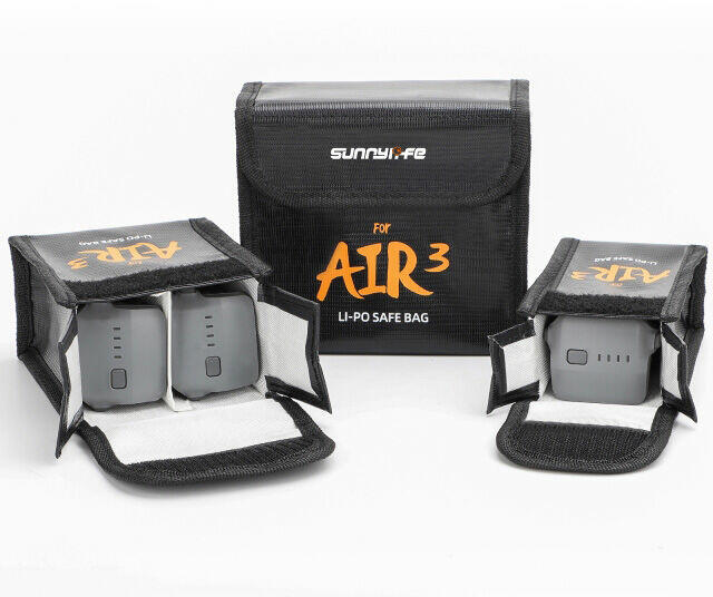 Tűz és robbanásálló akkumulátor tároló zsák, melyekben biztonságosan tárolható és hordozható a DJI Air 3 akkumulátora. A tároló ezen verziója három darab akkumulátor befogadására képes. Méret: 77x130x50 mm