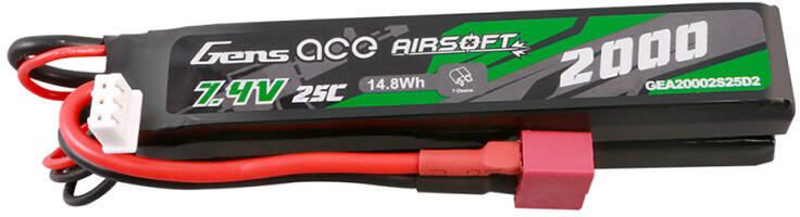 Gens Ace 25C 2000mAh 2S2P 7.4V nyerges Airsoft Gun Lipo akkumulátor Mini Deans(T) Plug csatlakozóval A Gens Ace 25C 2000mAh 2S2P 7.4V-os Gens Ace 25C 2000mAh 2S2P 7.4V Saddle Airsoft Gun Lipo akkumulátor Mini Deans(T) Plug csatlakozóval kifejezetten az ASG fegyverutánzatok táplálására készült. Tökéletes a legtöbb elektromos gépfegyverhez, mint például az M4, CM16 SCAR AR15 LE STOC