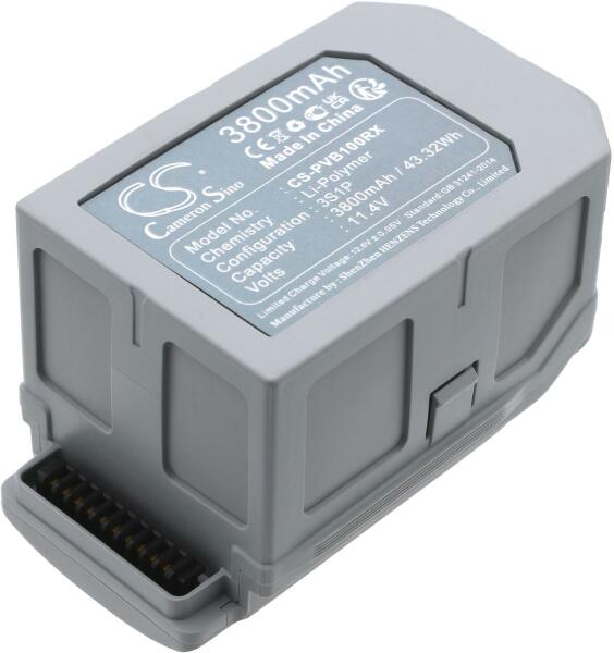 Akkumulátor Cameron Sino CS-PVB100RX Kompatibilitás: Powervision Poweregg XEAN: 4894128193388 Feszültség: 11.40 V Típus: Li-Polymer Kapacitás: 3800 mAh Energia: 43.32 Wh Magasság: 84 mm Szélesség: 52 mm Mélység: 52 mm Súly csomagolás nélkül: 236 g Súly csomagolással együtt: 306 g