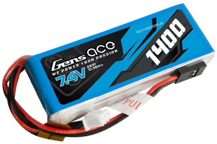 Gens ace 1400mAh 7.4V 2S1P LiPo akkumulátor a JR plug-in adóhoz 1400mAh kapacitásával és 7,4V/2S feszültségével a Gens Ace akkumulátor ideális áramforrás RC adójához. Alacsony, mindössze 1C-s kisütési sebessége rendkívül biztonságossá és megbízhatóvá teszi. JST-XHR kiegyenlítő csatlakozóval és JR dugóval felszerelve tökéletesen illeszkedik az olyan RC adókhoz, min