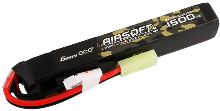 Gens ace 25C 1500mAh 3S1P 11.1V Airsoft Gun Lipo akkumulátor mini Tamiya Plug csatlakozóval A Gens ace 25C 1500mAh 3S1P 11.1V Airsoft Gun Lipo akkumulátor mini Tamiya Plug csatlakozóval kifejezetten az airsoft rajongók számára készült, garantálva a szükséges energiát a csatatéren. Az 1500mAh kapacitással és 11,1V-os feszültséggel stabil és hosszan tartó energiát biztosít a me