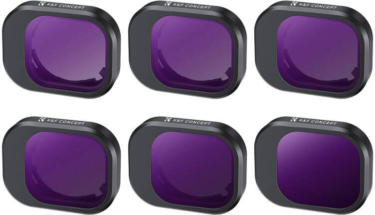 K&F Concept ND szűrőkészlet (4/8/16/32/64/1000) DJI Mini 4 Pro-hoz. A K&F Concept 6 ND szűrőből álló készlete lehetővé teszi, hogy még jobb felvételeket készítsen DJI Mini 4 Pro drónjával. Sikeresen használhatja változatos körülmények között - felhős és napsütéses napokon egyaránt. A mellékelt szűrők strapabíró, könnyű kialakításukkal tűnnek ki, és n