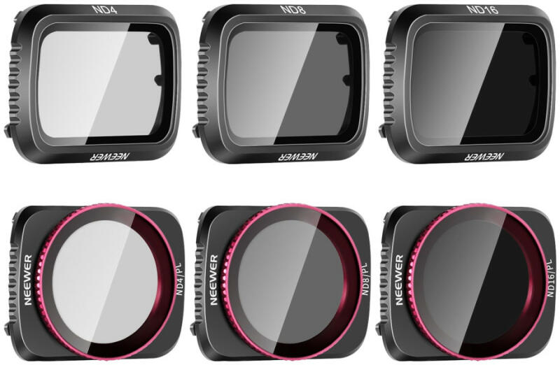 NEEWER DJI Mavic Air 2 6in1 ND (ND4 ND8 ND16, ND4-PL ND8-PL ND16-PL) ND-szűrő Filter (6db) - DJI Mavic Air2 Szűrő Kit Ez a szűrőkészlet kifejezetten a DJI Mavic Air 2 számára készült. Ideális kültéri fotózáshoz, professzionális minőségű mozgóképek és videók rögzítéséhez. Az ND/PL szűrők kiválóan alkalmasak a nem fémes felületekről származó nem kívánt tükröz