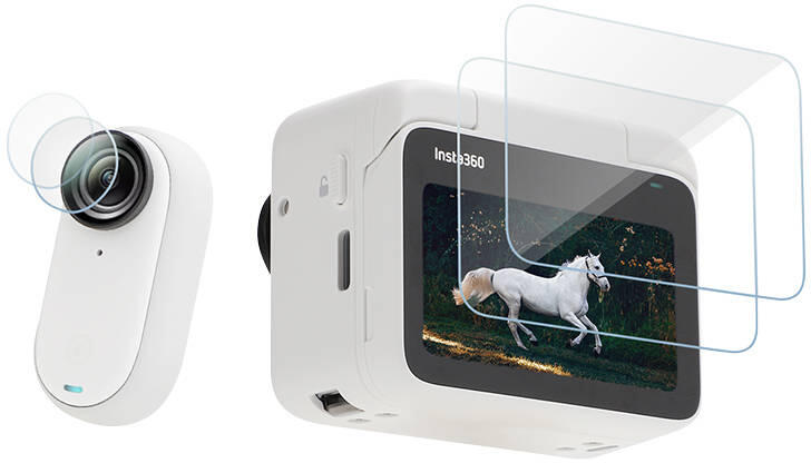 Sunnylife védőüveg a képernyőhöz és a lencséhez az Insta360 Go 3 készülékhez A Sunnylife IST-BHM587 edzett üveg tökéletesen illeszkedik az Insta360 Go 3 videokamera képernyőjére és lencséjére - nem kell semmit levágni vagy speciálisan beállítani. A 0,3 mm vastagságú üveg biztosítja a képernyő sima reakcióját az érintésre, így egyáltalán nem fogsz különbséget