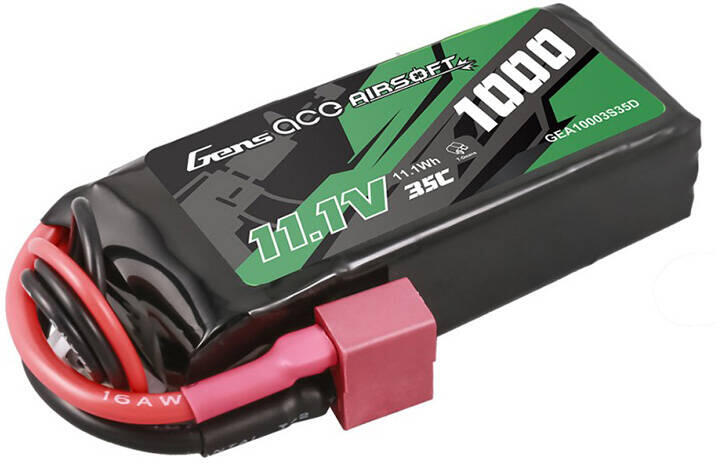 Gens ace 35C 1000mAh 3S1P 11.1V Airsoft Gun Lipo akkumulátor T Plug csatlakozóval. Az 1000 mAh kapacitású és 11,1V feszültségű Gens Ace akkumulátor az Airsoft pisztolyutánzatok működtetésére szolgál. T csatlakozóval van ellátva, és 35C kisütési kapacitással garantálja a hosszan tartó teljesítményt. A PEQ lézerrel való együttes használat lehetősége ideális választá