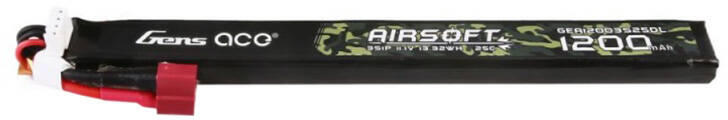 Gens Ace 25C 1200mAh 3S1P 11.1V Airsoft Gun Lipo akkumulátor T Plug hosszú méretű csatlakozóval A Gens Ace 25C 1200mAh 3S1P 11.1V Airsoft Gun Lipo akkumulátor T dugóval csatlakozóval kifejezetten airsoft pisztolyutánzatok energiaellátására készült. Az 1200mAh kapacitással és 11,1V-os feszültséggel stabil energiát biztosít a hosszan tartó csaták során. A 25C kisütési sebess