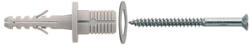 Univerzális nylon dübel. Alkalmazható: üreges fal szerkezet, YTONG tégla. Anyaga: Poliamid 6 (Nylon). Csavarátmérő 4 mm, csavarhossz szükség szerint: minimum 65 mm + a felfogandó tárgy vastagsága.