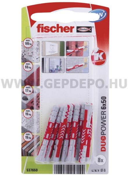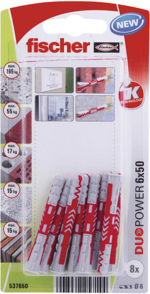 Az erő és az intelligencia duójaFischer DuoPower kétkomponensű nylon dübel 3 funkcióvalAz univerzális intelligens dübel minden építőanyaghoz alkalmazhatóEzáltal különféle típusú szerelések megoldhatóak egyetlen dübellelAz építőanyagtól függően automatikusan működésbe hozza az optimális rögzítési elvet (feszítés, alakformálódás, csomósodás)A lehető legjobb