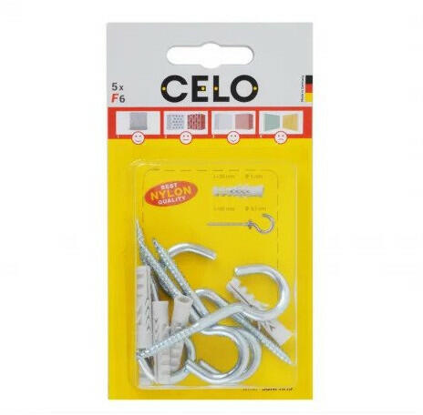 CELO NF 6 szárnyas dübel + 4,2 x 65 körkampós csavar - 5 db A készlet tartalma: 1 x Szemescsavar 4,2x65 galv. Bliszterben1 x F 6 szárnyas nylon dübelA CELO F általános dübel nagy tágulási képességének köszönhetően magas kihúzási értékekkel rendelkezik. Széles méret választékban kapható 4-20 mm átmérőig. Az F általános dübel ideális választás tömör építőanya