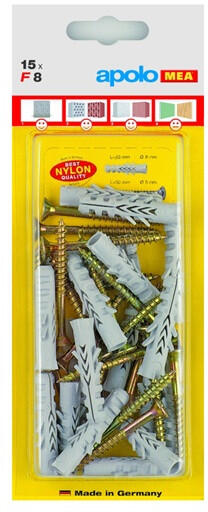 Celo NF 8 szárnyas dűbel + 5x50 facsavar - 20db / bliszter A kép illusztráció, a termék ettől eltérhet.