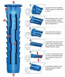Szerelésbarát két irányba terpesztő nylon dübelA perem nélküli kialakítás lehetővé teszi a dübel behelyezését a vakolat alá olyan mélyre, amely szükséges a teherhordó réteg, és ezáltal a maximális teherbírás eléréséhezMivel a dübel csak két irányba terpeszt, így lehetővé válik a terpesztési irány beállítása párhuzamosan a fal élével. Ezáltal szerelésn